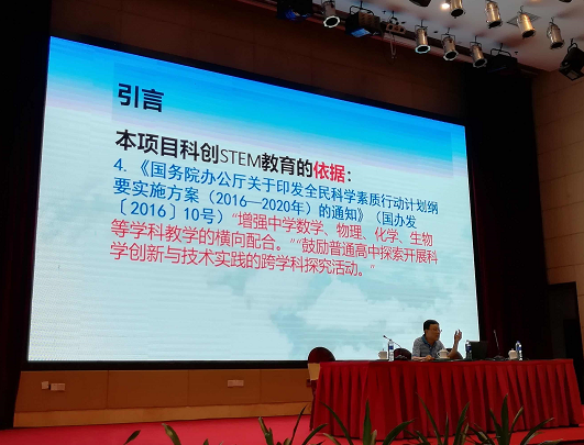 本次會議,首先由廣東省教育研究院科學王益群老師主持,并針對中小學幼兒園科普科創、STEM教育方案、教材培訓、教改實驗的培訓和研討等方面作報告。接著是科普科創成果展示環節,最后是王老師進行總結點評。