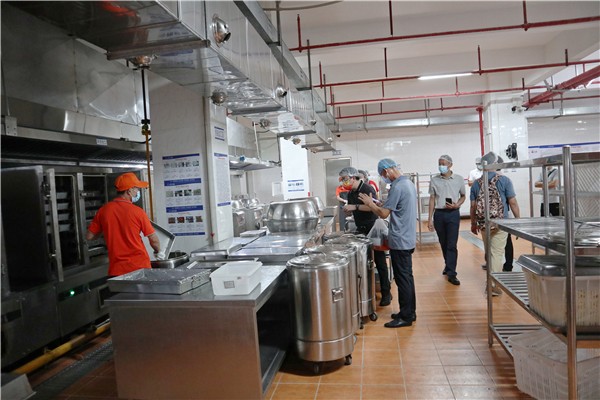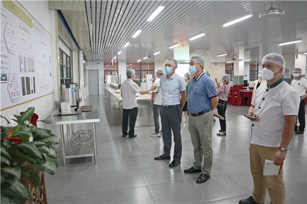 為讓學習團一行初步了解學校的辦學歷史和直觀感受校園環境,在辦公室主任張建國的帶領下,他們先沿著將軍銅像、程度純館、殲5戰機停機坪、西林山航空文化園、學生宿舍、運動操場的路徑邊走邊聽講解。隨后的參觀食堂環節,總務處主任鐘承炎負責講解。從學生食堂、教工餐廳到加工后廚,這里寬敞明亮的就餐環境、豐富營養的菜品樣式、暖心周到的服務、完善齊全的設施設備、科學精細的管理模式……讓學習團一行留下深刻印象,并紛紛點贊。