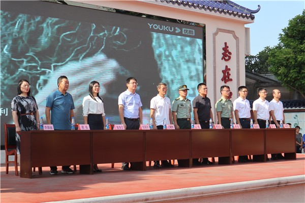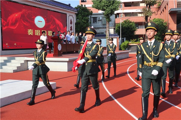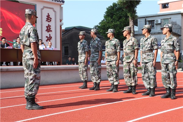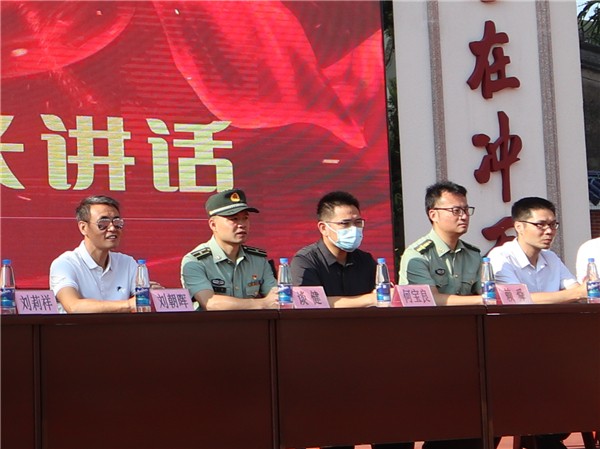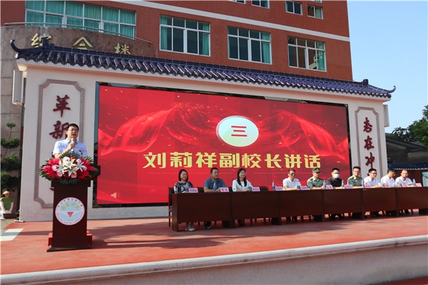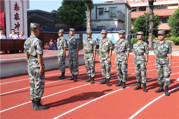 中山市軍分區參謀談健、石岐街道黨工委委員何寶良、石岐街道武裝部副部長賴舜、學校黨總支書記、校長劉朝暉、副校長劉莉祥、各處室和高一年級相關領導參加儀式。