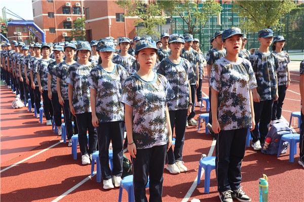 “刻苦訓練,增強本領,報效祖國……”,在年級主任黃靜的帶領下,每個同學大聲喊出軍訓的口號,連喊三遍,喊出青春的激情,激發愛國的豪情,充滿了蓬勃的青春朝氣。