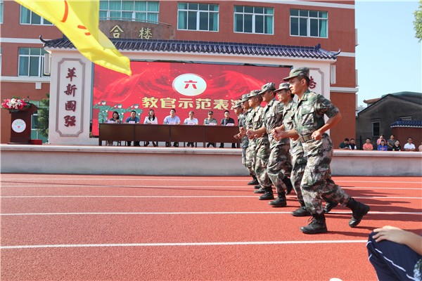 隨后,石岐街道武裝部的教官們帶來精彩的示范表演,他們以整齊劃一的方隊進行隊列展示。稍息、立正、跨立、敬禮……步伐整齊劃一,精神昂然向上,標準規范的軍訓動作進一步讓新生明確了接下來的訓練重點。同學們認真觀看,謹記于心,并給教官們的表演獻上熱烈的掌聲。