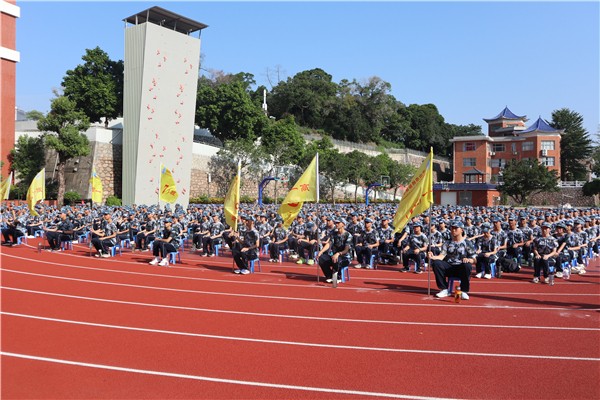 劉莉祥副校長作動員講話。他首先闡述了對軍訓的認識:軍訓是落實立德樹人根本任務的法定途徑、軍訓是磨煉意志力和提高綜合素質的育人途徑、軍訓是加強校風、學風、班風建設的管理途徑,讓同學們從思想上肯定軍訓的意義和價值。隨后他向同學們提出四點要求:一是端正思想,勤學苦練;二是遵守紀律,文明有禮;三是開展競賽,爭先創優;四是作風遷移,適應準軍事管理。希望同學們以飽滿的熱情、昂揚的斗志,出色的完成訓練任務,展現我校陽光自信的學生形象。