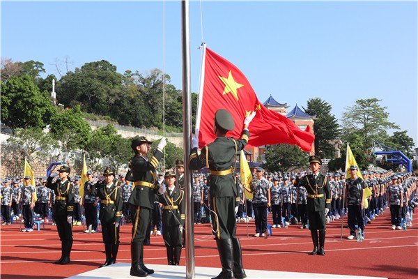 伴隨著莊嚴而隆重的升國旗儀式,開訓典禮正式開始。本次軍訓將陸續進行軍姿訓練、隊形隊列等一系列的軍事學習。