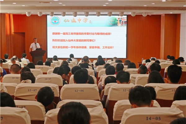 劉校長在講話中首先感謝新一屆高三老師暑假的辛勤付出與取得的成效,熱烈歡迎加入仙中大家庭的新同事們。