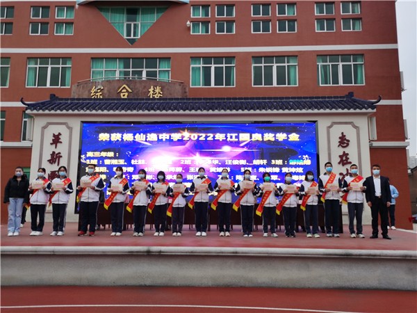 優秀學子代表張霜霜發表獲獎感言,感謝了江國良先生對優秀學子的褒獎。大家將帶著感恩之情,懷著對未來的美好期許,腳踏實地,奔向遠方,回饋母校、回報社會。她講到,善、雅、勤、新的校訓,將軍志在沖天的精神,時時激勵著同學們,以新仙中人之態鳴仙中之進步,以鏗鏘之勢發仙中之聲,為仙中發展添磚加瓦,努力成為仙中未來的榮光。
