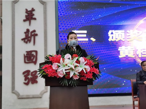 黃桂嫻女士作熱情洋溢的講話,介紹了江國良獎學金創立的目的,對仙中取得的成績和發生的可喜變化給予高度評價,送上鼓勵,表達期望,希望全體同學飲水思源,不忘根本,用更好的成績,更優異的表現來回報母校,回報社會。