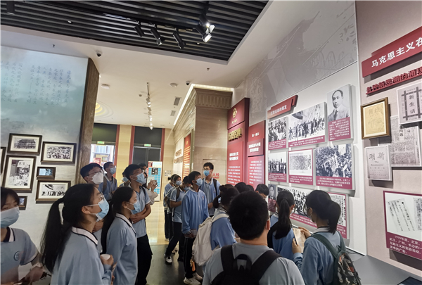 下午一時許,我們來到了位于廣州市越秀區的“團一大”紀念館進行參觀學習。紀念館緊扣“中國共產黨領導下的中國社會主義青年團創建”主題,地上地下共有約1200平方米的展覽面積和展示空間,展示了黨親手締造共青團、指導共青團創建的歷程,歷史再現了共青團歷史上的重大事件、重要人物和重要會議。師生們踏著場館內的“歷史足跡”,追憶起那段“青春”的崢嶸歲月。同學們在一件件歷史文物前駐足觀看,停留良久,這是一場生動的愛國主義教育,團史教育。