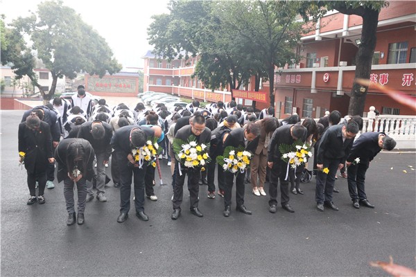 升旗禮后,高一高二年級返回班級,由班主任再作教育。高三年級和學校行政則來到楊仙逸將軍銅像前,瞻仰銅像、默哀并獻花。隨后,師生拾級而上,繞徑殲五戰機上西林山航空文化園,在園內的念慈亭下駐足列隊,祭拜程度純和楊添靄母子。在一片安靜肅穆的氣氛中,老師們獻上手中鮮花,高三各班學生把手制紙花和紙飛機放在墓前,表達哀悼和無盡敬仰。