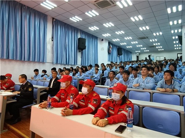 講座結束后開展了應急救護技能現場教學及演練。來自中山彩虹救援隊的隊員志愿者們親身示范了海姆立克急救法、心肺復蘇等安全急救方法。