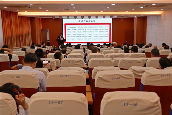 學校辦學特色報告由學校黨委書記、校長劉朝暉主講,題為《“激勵教育”辦學理念的構建與實踐》。劉校長從學校歷史、學校現狀和治校理念與實踐三部分闡述了學校基本情況。“一部家史就是一部愛國史和奉獻史、一部校史就是一部奮斗史和激勵史”,劉校長從學校內部的激勵資源出發,重點介紹了學校激勵教育的理論和具體實踐,即以“面向全體、分類施教、分層激勵、全方位激勵”為原則,從理想、文化、目標、榜樣、評價、活動、自我、相互、課堂激勵九個方面進行激勵。