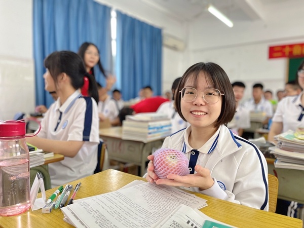 在炎炎的夏日之中,各班教室里歡聲笑語,拿到蘋果的學生們和老師們心情激動,臉上樂開了花,在校長們的鼓勵下自信滿滿。班主任和科任老師們精心準備了“高考必勝”貼紙和紅手繩,儀式感滿滿!