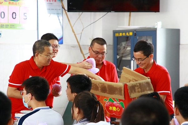 6月1日上午,由中山市第二中學黨委書記、校長吳祥明同志帶隊,王曙東副校長、梁紅妹副校長、侯志堅副校長等校領導分組走進高三各班教室,給高三考生們每人送上一個蘋果,他們希望二中高三學子自信滿滿,贏六月碩果,也希冀中山二中2022屆紅紅火火,碩果累累。