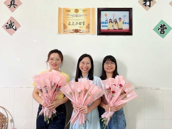 作為活動的組織策劃者,心理老師們也化身“花藝人”,親手給每一個(gè)后勤工作人員準(zhǔn)備美美的花。