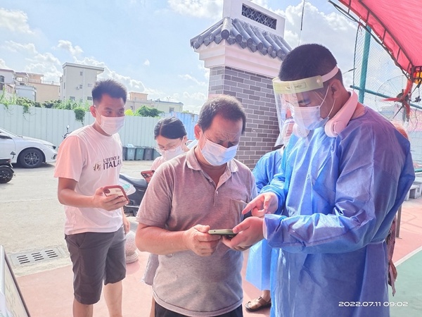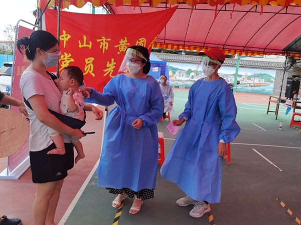 鄧立昉、黃翠媚等老師響應當地阜沙鎮、橫欄鎮社區工作要求,加入當地臨時黨支部,配合開展工作。在現場,教師們頂著烈日超負荷高強度開展工作,全力配合社區工作人員,指引群眾填報信息,維持現場秩序,挨家挨戶動員群眾做核酸檢測……充分展現了“服從組織、聽從指揮”的大局意識、“舍小家為大家”的奉獻精神、“一名黨員就是一面旗幟”的表率作用,為疫情防控工作作出了積極貢獻。
