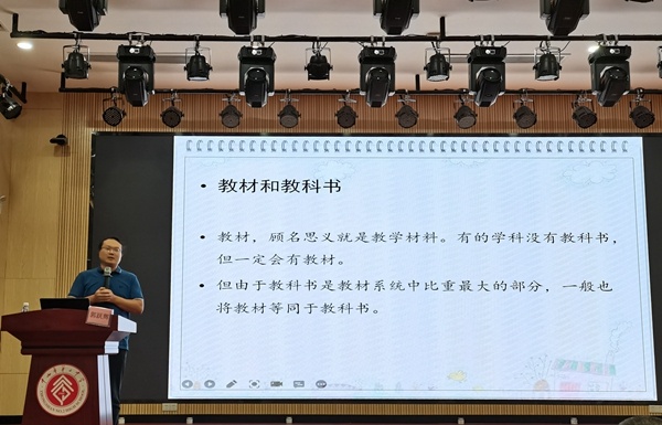 講座伊始,郭老師以自己參與的一次教材分析類論文評選經歷引出了目前老師們寫作中存在對“論文類型”模糊、不清楚教材分析的基本路徑與原理的現象。針對老師們寫作中遇到的困境,郭老師從教材分析的價值、教材分析的角度、教材分析論文的常見框架及教材分析類論文撰寫指南四個方面細致講解了教材分析類寫作的方法。郭老師提出,教材分析就是分析教材內容,教材分析的目的是明確教學內容和流程。用形象的語言來說教材分析如同泡茶,將高度濃縮的干茶泡開,泡出茶葉的元素與香氣,如同把握教材的知識和載體,進而明確“喝什么”和“怎么喝”。而對于教材分析的角度,郭老師認為可以就教材文本、教材助學系統、教材結構、教材理念四個角度進行,并提出了“課程與教學基本原理類”“教材版本對比類”“教材特點及問題分析類”三類論文的參考框架。