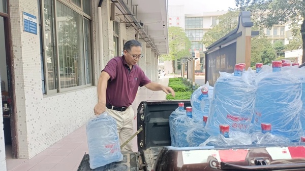 做好校園內的物資供保工作,總務處本著“保障教學,服務師生”的原則,及時搬運遮陽傘,撐起通道,應對可能面臨的降雨天氣;保障校園內桶裝水儲備。