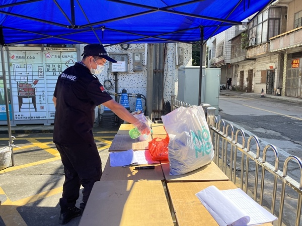 由于冷空氣南下影響我市,中山市的氣溫急劇下降,最高氣溫只有17度,夜間最低溫度只有9度,黃圃鎮又是疫情封控的特殊時期,面臨這一次大考驗,二中校領導時刻關注師生需求,高度重視,召開緊急會議,全面動員,積極部署,迅速行動,后勤保障人員克服各種困難,化身為校園戰疫行動中一個個忙碌的身影。溫未降,愛先行。因此學校積極聯系市委市政府以及郵政,開通綠色通道,學生家長可給學生寄來衣服、被子或常用藥品,教師可讓家人寄送生活物資。班主任們連日來緊急摸排班級同學們缺少衣服、棉被的情況,調查家長寄送衣物的情況。在總務處的安排下,學校安保人員嚴格落實加強各項疫情防控工作,學校大門封閉,外來物資統一先放在第一道閘門桌子上放置一定的時間后,由保安戴口罩和手套進行消毒之后將物品進到學校校道的桌子上。