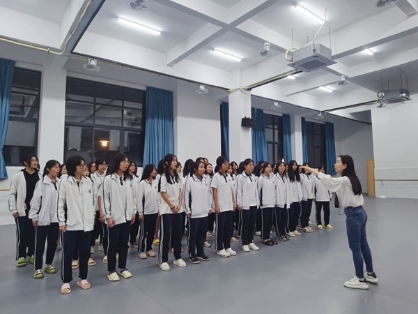 根據(jù)文件《中山市教育和體育局關(guān)于印發(fā)<2022-2024年度中山市中小學(xué)生藝術(shù)活動(dòng)規(guī)劃>的通知》,本學(xué)期將開(kāi)展市合唱比賽與舞蹈比賽,中山二中的老師和同學(xué)們也響應(yīng)號(hào)召,積極地籌備比賽節(jié)目。 由于高中學(xué)生學(xué)習(xí)緊張且臨近比賽時(shí)間有限,合唱團(tuán)與舞蹈隊(duì)的同學(xué)們利用課余時(shí)間開(kāi)展緊張的排練。音樂(lè)科組魏媛老師和劉曉琴老師主要擔(dān)任合唱團(tuán)的排練活動(dòng),劉姿老師擔(dān)任舞蹈團(tuán)的排練活動(dòng)。