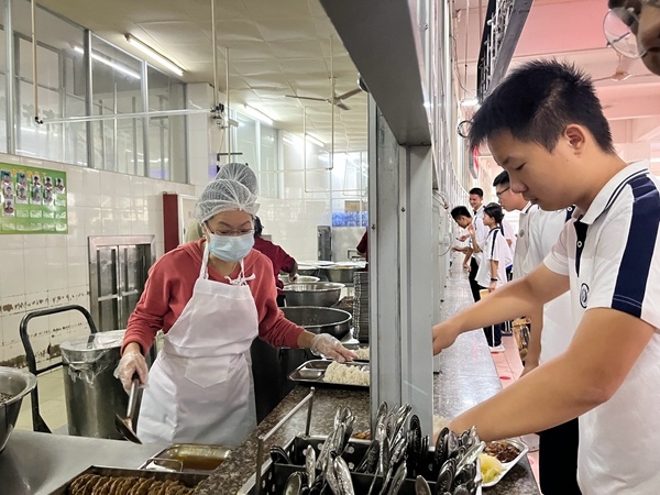 面對(duì)飯?zhí)脝T工人手不夠等問(wèn)題,在王曙東校長(zhǎng)的帶頭示范下,教師們紛紛加入飯?zhí)么蝻堉驹阜?wù)中,老師們主動(dòng)請(qǐng)纓變身食堂廚工,幫助分飯分菜。有模有樣的“新手們”。學(xué)生發(fā)現(xiàn)打飯師傅是自己的老師,驚訝又驚喜。