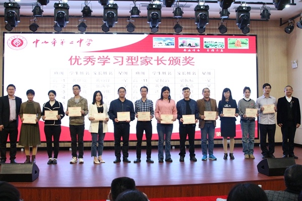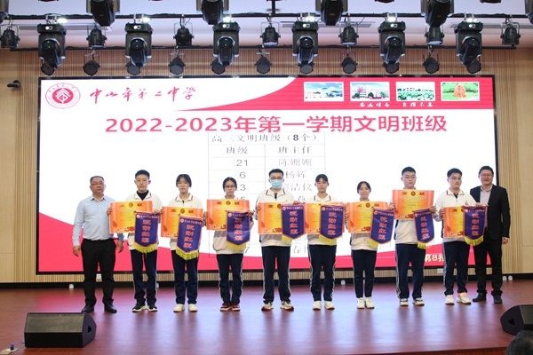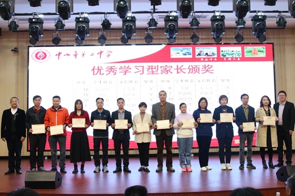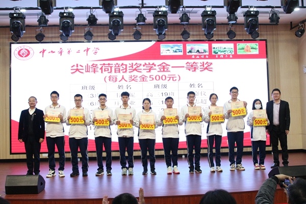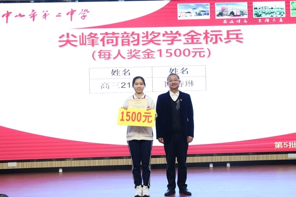 梁學斌副校長宣讀中山市第二中學表彰決定,對獲得尖峰荷韻獎學金標兵獎、特等獎、一等獎、二等獎、三等獎獎學金的學生,以及獲得“文明班級”“三好學生標兵””星級學習型家長”榮譽稱號的集體和個人進行表彰頒獎,號召全校同學向身邊的榜樣學習,奮發圖強,爭取優異成績。獲獎同學依批次上臺領獎。