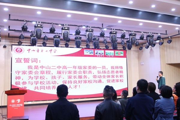 習近平總書記說:“家庭是社會的基本細胞,是人生的第一所學校。不論時代發生多大變化,不論生活格局發生多大變化,我們都要重視家庭建設,注重家庭、注重家教、注重家風,緊密結合培育和弘揚社會主義核心價值觀,發揚光大中華民族傳統家庭美德。”中山二中歷來重視家校協同育人,重視學生的全面發展,3月27日下午,中山市第二中學2022級高一年級家委會成立大會在報告廳召開。學校黨委書記、校長王曙東,副校長侯志堅,紀委書記、教科室主任、高一年級主任李俊文,德育處副主任、高一年級組長羅玉瓊、高一年級家長委員會成員出席大會。會議由羅玉瓊副主任主持。