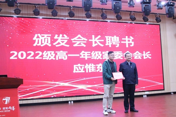 隨后,王曙東校長為高一年級家委會會長應惟東先生頒發聘書。