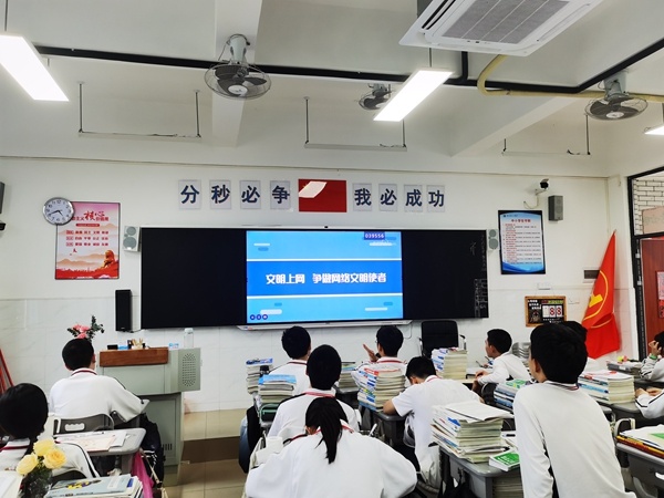 為加強對學生網絡信息意識和行為的培養,廣泛宣傳國家互聯網管理、使用及網絡安全等法律法規,倡導文明上網、健康上網,自覺抵制網絡不良信息,營造良好的網絡環境,促進青少年學生健康成長,2023年3月13日,中山市第二中學以班級為單位,開展學習《預防中學生沉迷網絡安全教育》主題班會。