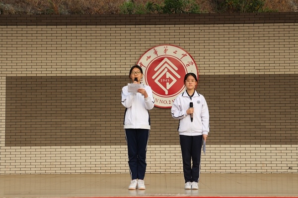3月13日清晨,中山二中于體育場開展本周升旗儀式,國旗班同學(xué)手持國旗,列隊(duì)進(jìn)場。鮮紅的國旗,伴隨著雄壯的國歌聲,升旗儀式莊嚴(yán)而神圣。高一4班劉心潔、譚文茜兩位同學(xué)作《文明中山,你我共建》的國旗下演講。
