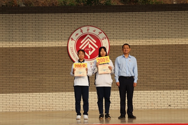 演講結(jié)束后,教務(wù)處高飛燕副主任主持頒獎(jiǎng)儀式。梁學(xué)斌副校長宣讀2022-2023學(xué)年第一學(xué)期尖峰荷韻獎(jiǎng)學(xué)金表彰決定。獲獎(jiǎng)同學(xué)依次上臺(tái)接受頒獎(jiǎng)。此外,獲得2022年“中山市詩詞大會(huì)”現(xiàn)場競賽活動(dòng)三等獎(jiǎng)、2022年第二屆科技節(jié)一等獎(jiǎng)、2月份文明班級(jí)、宿舍的同學(xué)或班集體也進(jìn)行頒獎(jiǎng)表彰。