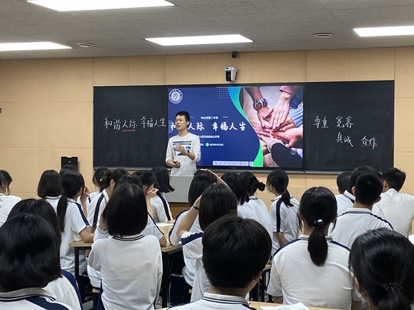 4月20日上午,中山市第二中學(xué)在實驗樓錄播室開展了《和諧人際,幸福人生》主題班會觀摩課。該節(jié)班會課由計世光老師主持。計世光老師以一個猜字游戲?qū)?,從甲骨文“朋友”二字的本義說起,引起了同學(xué)們的興趣。接著,他通過朗讀人際關(guān)系的名人名言、呈現(xiàn)社會主義核心價值觀、分享案例,讓同學(xué)們體悟人際關(guān)系的重要性。立足學(xué)生實際,引出高中生人際交往過程的常見問題以及應(yīng)對原則和技巧——尊重、寬容、真誠、合作,即“做好自己,釋放善意”。計老師通過視頻呈現(xiàn)、容忍度測試、吐嘈大會、期評成績、最美二中宿舍、校運會的故事等環(huán)節(jié),將課堂一步步推向高潮,同學(xué)們深受激勵,在場聽課的老師也多次叫絕。班主任是班級的組織者和管理者,同時,也是全面負(fù)責(zé)一個班學(xué)生的思想、學(xué)習(xí)、健康和生活等工作,班主任的工作決定著德育工作的質(zhì)量。此次經(jīng)驗交流會為德育工作者搭建了一個互相交流、互相學(xué)習(xí)的平臺,在輕松、融洽的氛圍中給大家?guī)砹嗽S多啟發(fā)和收獲,為我校德育工作扎實有效的開展起到了積極的促進(jìn)作用。