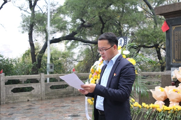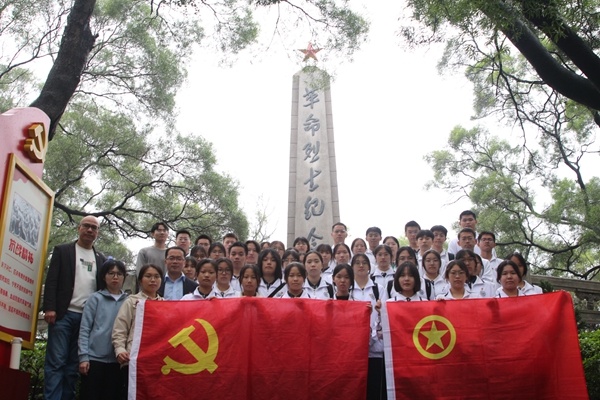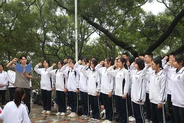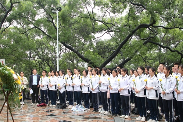 2023年3月31日下午,中山二中40余名優秀團學干部在校黨委委員、德育處主任李燦澤老師,第四黨支部書記冼春明老師、校團委書記湯秀蘭老師、高一年級團總支書記馮澳文老師和團委陳曉琳老師的帶領下,徒步赴黃圃鎮花果山革命烈士陵園祭奠革命英烈。