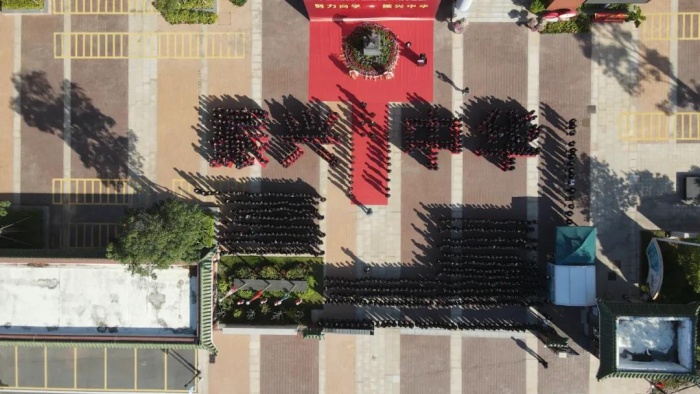 上午8時50分許,美麗的紀小校園在冬日暖陽的照耀下顯得分外莊嚴肅穆,全體師生、家長代表有序在學校廣場列隊肅立,三、四年級學生站立成“振興中華”四個大字。