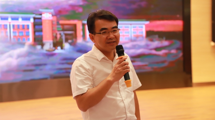 在座談交流環節中,謝志斌校長首先代表全體教師對各位領導的到來表示熱烈的歡迎和衷心的感謝,向與會教師代表逐一介紹了走訪慰問的領導,并結合2021年教師節主題“賡續百年初心,擔當育人使命”希望紀小教師堅定初心使命,弘揚偉大的建黨精神,切實擔當為黨育人為國育才的光榮使命;接著,全體與會人員一起觀看了紀小宣傳片《后學念前賢?鴻圖開新篇》;最后,梁克書記致辭,他指出:“中山紀念小學是新區第一所學校,從校園優美的環境、教師的精神面貌多方面可以看出,這里很好地繼承了中山精神,你們是新區教育事業的‘拓荒?!瑥暮⒆觽兝世蕰暰涂梢灾?,你們的努力奠定了新區教育事業的基礎,謝謝你們!作為新區第一所學校的教育工作者,你們要努力在這片熱土上揮灑熱血,把中山紀念小學創辦得更加美好,為新區教育事業作出貢獻!”