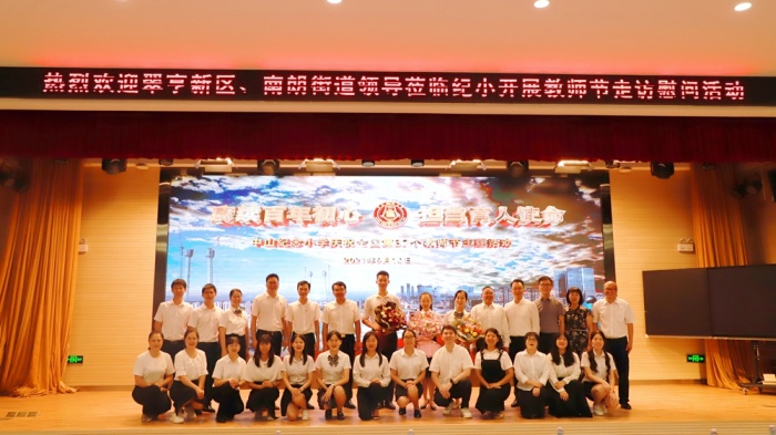 座談會結束后,梁克書記、葉新雄副書記、馮建文副書記分別向三位教師代表送上鮮花,向紀小全體教師致以節日的祝賀和誠摯的慰問,大家在濃郁的節日氣氛中合影留念。
