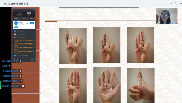 5月8日晚7:30,兩校老師在線上相聚一起,首先,中山紀念小學張月明老師執教一年級看圖寫話直播課。張月明老師的課堂勇于創新,設計符合學情,先用生動有趣的手指操引導學生記住打開寫話大門的“六把鑰匙”,再現場連線,讓學生觀察相片,大膽表達,學生踴躍發言,課堂氛圍融洽,師生配合默契。張老師借此鼓勵學生要留心觀察生活中的事物,把所見所聞大方、流利地表達出來,再轉化為文字落實到寫句子、寫話中去。