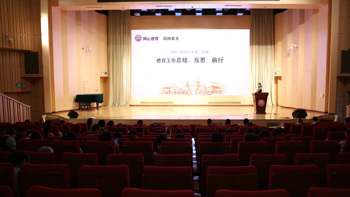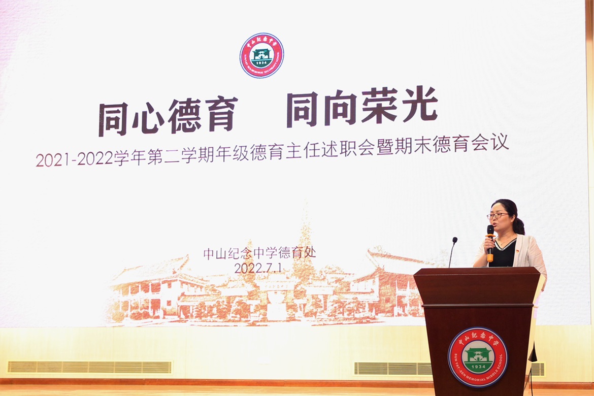 2022年7月1日下午,我校德育處在音樂廳組織召開本學期德育主任述職會暨期末德育會議。學校黨委委員、紀委書記王長在出席了會議。會議由學生工作黨支部書記、德育處主任賈金珠主持。全體德育干部、班主任參會。