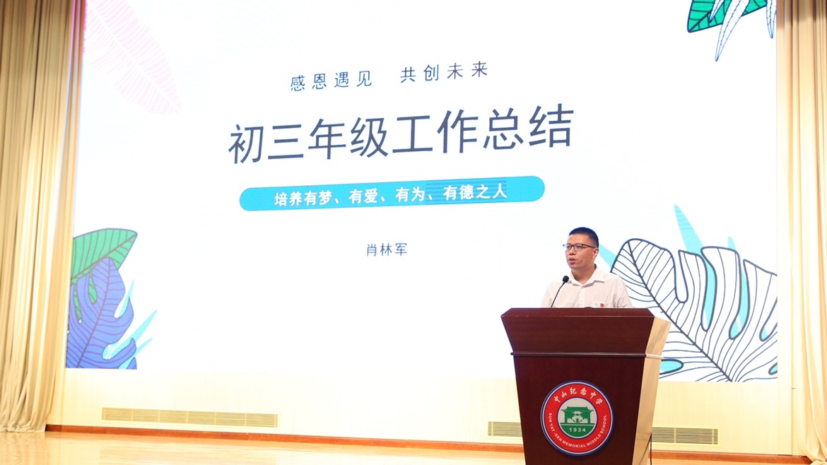 初三肖林軍主任的述職主要圍繞中考備考、團隊建設和德育數據化管理三方面進行論述。他強調,德育既關注外顯文化符號的寫入,也重視內在文化內涵的培養。開展主題演講比賽、觀影、跳繩比賽、“最美班級”評比、中考百日誓師、畢業典禮等多項活動,助推孩子心靈的成長。同時整合紀中德育管理平臺、總務數據平臺和國家中小學網絡云平臺,協助初中部籌建“紀中初中部”公眾平臺,不僅深入實現數據化管理,而且搭建了初中部優秀教師展示宣傳平臺。
