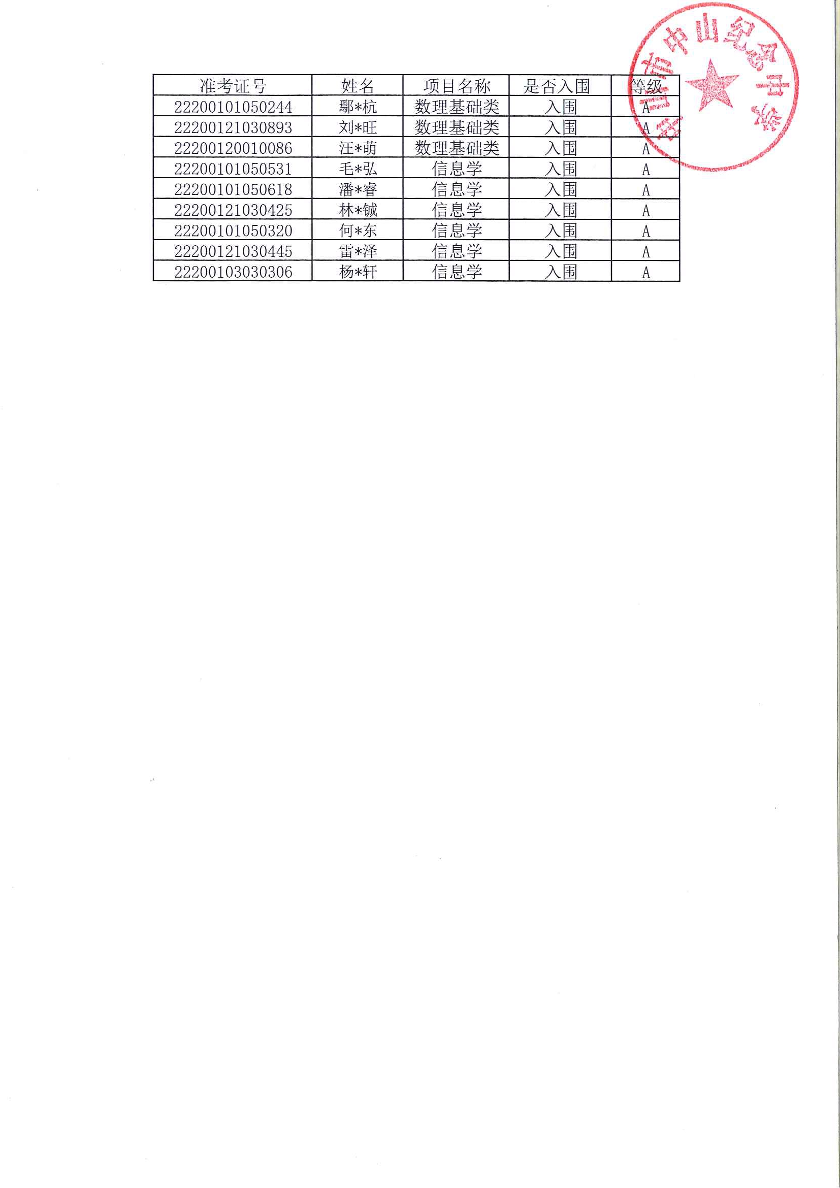 根據(jù)《中山市教育和體育局關(guān)于做好中山市普通高中學(xué)科類自主招生工作的通知》(中教體通〔2022〕88 號)和《中山紀(jì)念中學(xué) 2022 年“強基班”自主招生簡章》文件精神,我校7月7日對獲得自主招生考核資格的學(xué)生進(jìn)行了考核。經(jīng)考核小組認(rèn)真、規(guī)范、公平、公正考核和評分,現(xiàn)將入圍我校“強基班”自主招生資格名單予以公示,接受社會監(jiān)督。