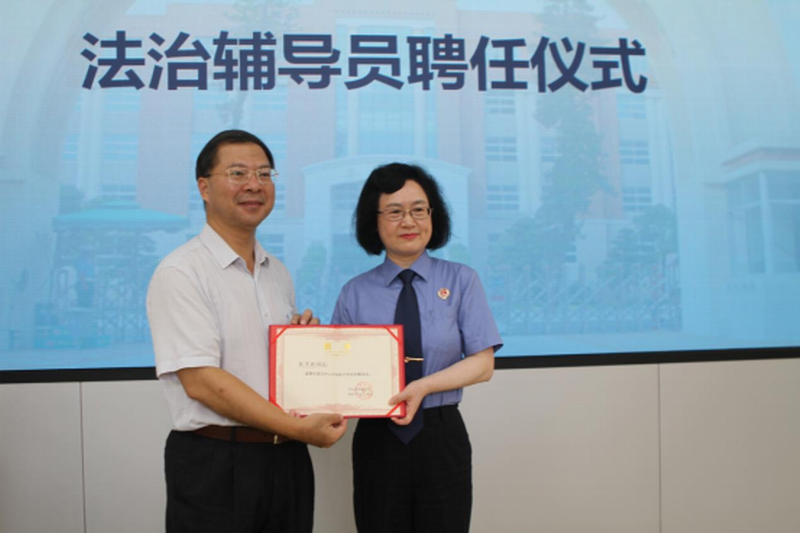 接下來(lái)舉行聘任儀式。高毅校長(zhǎng)向何兆英副檢察長(zhǎng)頒發(fā)了我校法治副校長(zhǎng)聘書(shū),向徐華玲檢察官頒發(fā)了我校法治輔導(dǎo)員聘書(shū)。