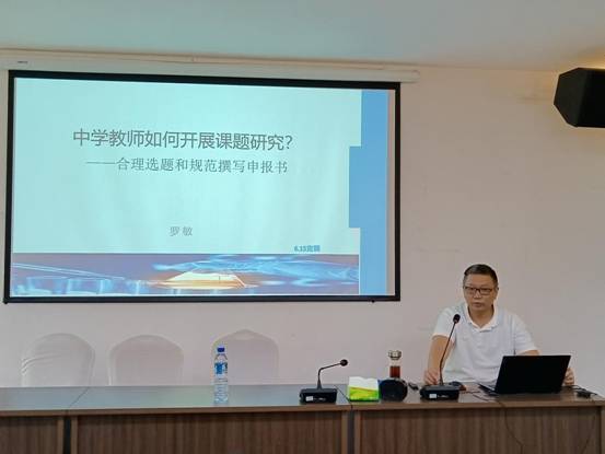 6月15日下午,貴州省教科院基礎教育研究所教研員、貴州省特級教師羅敏老師帶來課程《中學教師如何開展課題研究》,就中學一線教師作科研的目的、意義、方法等方面進行了系統闡述。?
