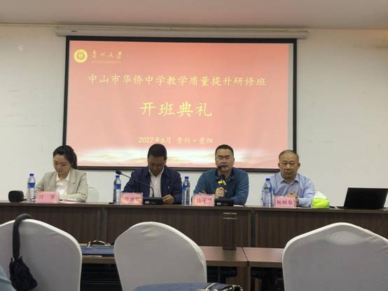 6月13日上午8:30分,中山市華僑中學教學質量提升研修班于貴州大學北校區正式開班,開班儀式由培訓班班主任許霽老師主持。貴州大學學術交流中心副主任吳康毓出席開班儀式,并作為主辦方領導致歡迎辭。我校副校長林子孚在開班儀式上作動員講話,并對參加培訓的老師提出要求,希望大家珍惜培訓機會,不斷吸收新知、開闊眼界。