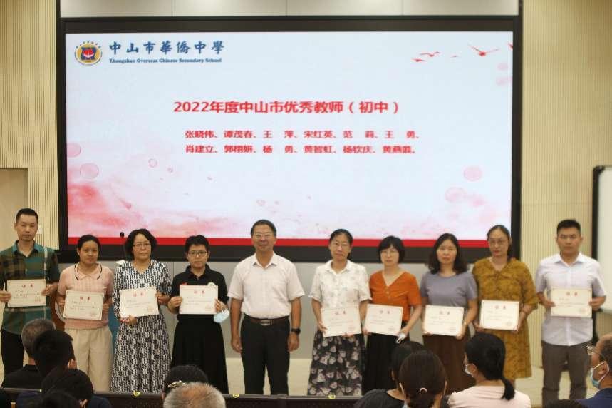 會(huì)上,校黨委委員、副校長周紅梅、朱愛東分別宣讀了表彰名單。2022年,我校龔瀚慧老師獲評(píng)中山市師德標(biāo)兵;張曉偉、于洋等52名老師獲評(píng)中山市優(yōu)秀教師。校黨委書記、校長高毅為獲獎(jiǎng)老師頒獎(jiǎng)。