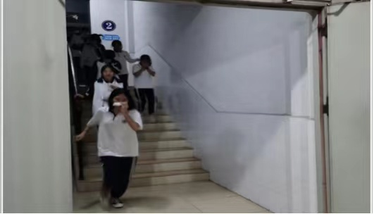 林子孚副校長對此次演練活動作了點評總結(jié)。他指出,本次演練,年級高度重視,德育處、總務(wù)處精心組織,周密配合,各樓層、樓梯負責的老師以最快的速度到達所在崗位,班主任認真負責,組織學生疏散,同學們服從安排,聽從指揮,動作迅速,有序撤離,本著“時間就是生命,紀律就是保障”原則,以較快的速度撤離到安全地帶,圓滿地完成了此次消防疏散演練活動。同時,他還結(jié)合韓國梨泰院踩踏事件的慘痛教訓,提醒同學們要樹立消防安全意識,掌握必要的緊急避險知識和逃生方法。