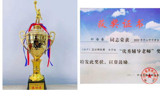 近日,從市教體局傳來喜訊,在2022年12月13-17日舉行的中山市初中籃球錦標賽中,我校初中部女子籃球隊在鐘海春老師的帶領下,以良好的賽風、精湛的球藝、頑強的拼搏精神,一路過關斬將,充分展示了“自強不息,敢爭第一”的僑中精神,取得了本屆聯賽第四名的好成績。鐘海春老師被評為“優秀輔導老師”。
