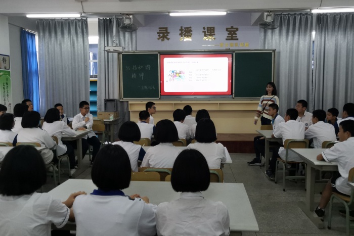 最后,德育處主任鄧妃弟作了總結,評價兩位老師的主題班會課各有特色,德育目標清晰,效果很好,給聽眾帶來了視覺與聽覺的盛宴。林詩琪老師也將代表學校參加鎮級比賽。