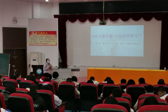 新春伊始,萬象更新!為進一步深化教學改革,激發(fā)學生學習的動力,堅定學生學習的毅力,培養(yǎng)學生的綜合能力,營造良好的互助互學氛圍,曹步初級中學開展“學習力”提升系列培訓活動。2月23日初一級學生在報告廳迎來了該培訓的“小組合作學習”的講座活動,吹響了新學期的嘹亮號角,散發(fā)了催人奮進的正能量。教導部門主任馮惠芳主持本次活動,區(qū)結玲老師主講。
