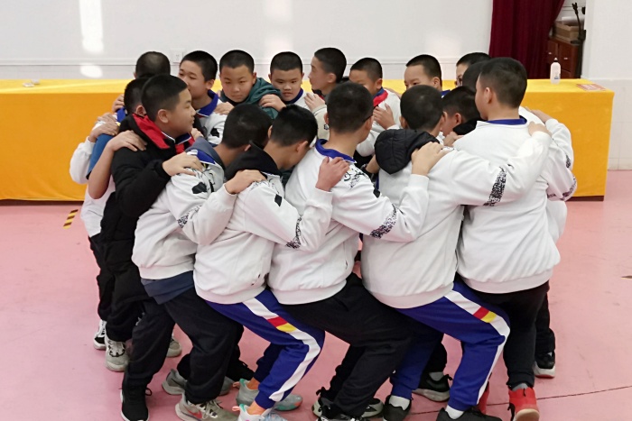 為了讓同學們在現(xiàn)場也能體驗“小組合作”的魅力,每班抽取了三名同學,通過游戲體驗讓大家親身實踐,體驗團結一致、講究方法才能發(fā)揮威力。