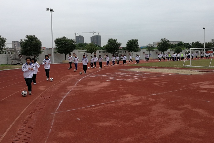 比賽前,德育副主任詹廣權(quán)先對(duì)本次比賽的規(guī)則和要求做了說明。哨聲響后,首先進(jìn)行的是初三年級(jí)的比賽。初三級(jí)各班按照升旗儀式的要求從本班教室迅速集中籃球場,詹主任點(diǎn)評(píng)后退場。在進(jìn)退場過程中,各班隊(duì)伍整齊劃一,口號(hào)嘹亮,展現(xiàn)了班級(jí)的精氣神;然后初三各班按照大課間的要求,或者左手統(tǒng)一持足球籃球集隊(duì),或者帶著整齊的步伐、響亮的口號(hào)跑步進(jìn)田徑場。進(jìn)場以后,先是進(jìn)行帶球跑步熱身,然后按照要求進(jìn)行大課間訓(xùn)練,整個(gè)過程統(tǒng)一有序,只是聽到腳步聲和球翻滾時(shí)與地面的摩擦聲,效果極佳。