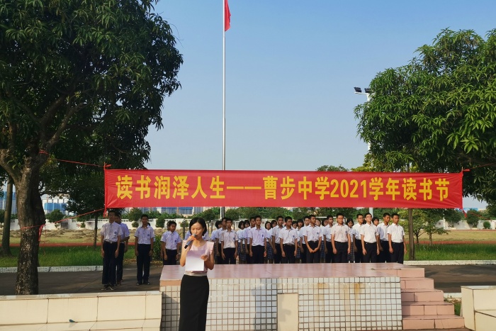 金秋九月的陽光鋪灑在校園的上空,空氣中帶著絲絲的燥熱。曹步初級中學讀書節開幕式在國旗下隆重地啟動。語文科組長鄭鳳老師在開幕式上做了題為“讀書潤澤人生”的發言。