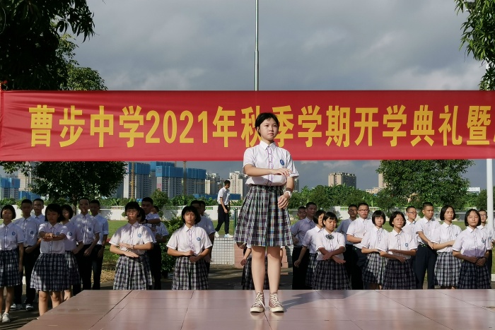 新學(xué)期,新氣象,新挑戰(zhàn),為增強(qiáng)師生責(zé)任感、使命感,明確新學(xué)期的奮斗目標(biāo),營造濃厚的開學(xué)氣氛,為新學(xué)期創(chuàng)造一個(gè)良好的開端,并以此激勵(lì)全校師生振奮精神、銳意進(jìn)取,以良好的精神風(fēng)貌投入新學(xué)期的工作和學(xué)習(xí)中,曹步初級中學(xué)9月1日上午在學(xué)校籃球場舉行2021年秋季學(xué)期開學(xué)典禮暨思政教育第一課活動(dòng)。活動(dòng)由余亞帶副主任主持。
